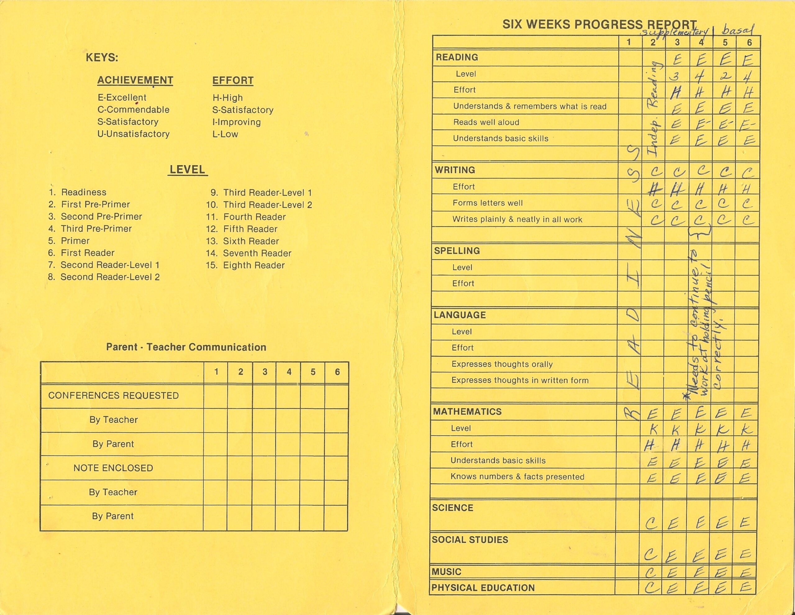 Kindergarten Progress Report TROUBLE